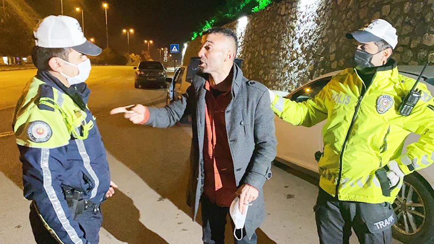 Polis ekiplerin işlemlerini yaptığı alkollü sürücü, trafik ekiplerin “ Siz varsanız biz varız. Ceza ise ceza. Haksızsam yazacaksın aga bu kadar basit. Sen haklısın, ben haksızım. Herkes yanlışını bilecek” dedikten sonra şarkı söyleyip oyun oynadı. Maskesini sürekli çıkararak ihlal eden sürücü ifadesi alınmak üzere polis aracına bindirildiği sırada ısrarla ellerini öpmek istediği polislere zor anlar yaşattı.
